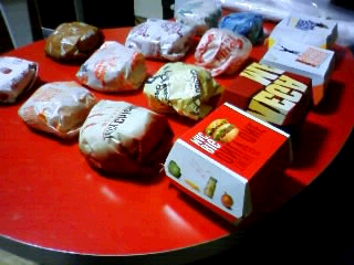むしゃくしゃしてやった。今では後悔(ry マクドナルドのハンバーガー系を全種類購入してみましたw まさしく「大人買い」ってやつですねb 15種類しかなかったので、意外と種類無いなぁ~、というのが正直な感想ですね・・・。 4000円弱で済みましたしね~。意外と低コストです。 ちなみに、ウチはマクドよりモス派です(ぁ 写真撮影後のハンバーガーさん達は・・・ おいしく処理いたしましたb 友人6人がかりの激しい戦いでした・・・。 ウチは2個でギブアップorz しばらくハンバーガーは食べたくないなぁ・・・w 機会があったらやってみるといいですよ!(ぉ