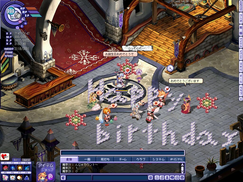 もう・・・しんどいので==; 装備は無事クラメンさんに分配しますた。 さ、Lunatiaがんばろう(ぁ でもですね・・・ クラブサイトホムペ管理者ウチなんですけど・・・ ナンテコッタイ /(^o^)\ どうするかな・・・==;